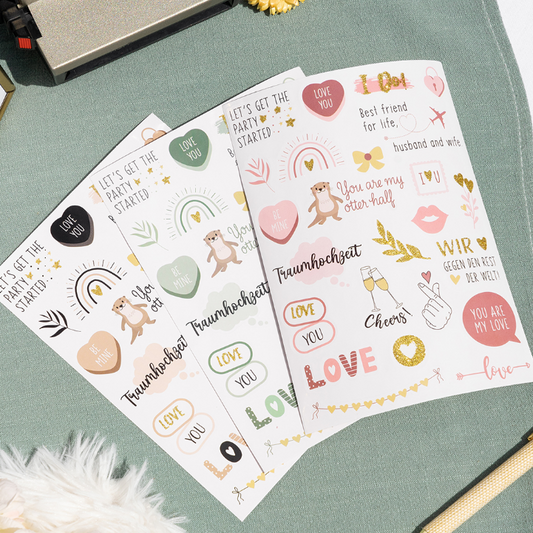 Sticker für Hochzeiten | Grün/Rosa/Schwarz