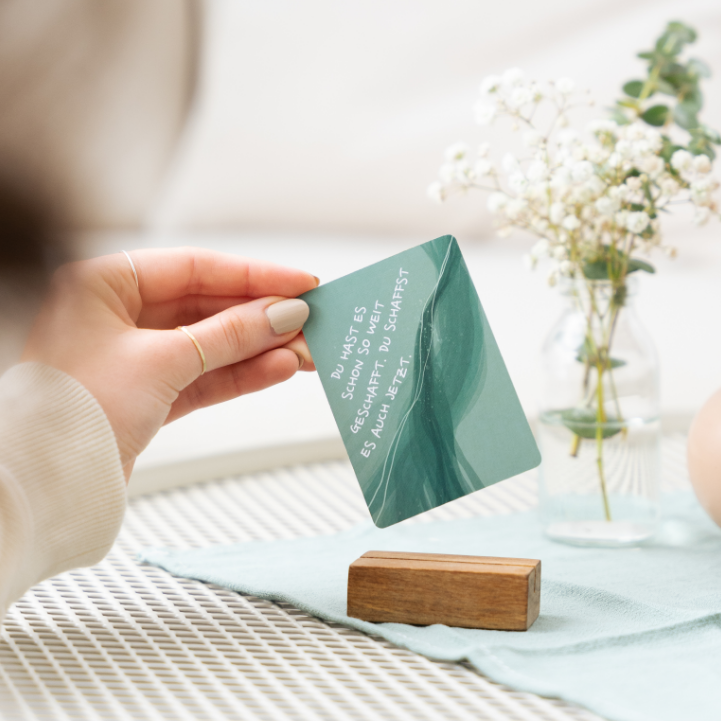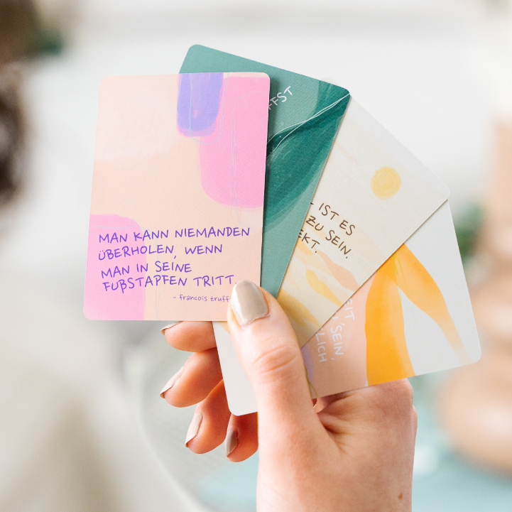 Deine Lieblingskarten kannst du in der Handtasche oder im Geldbeutel bei dir tragen, zur Arbeit mitnehmen oder im Auto platzieren. Natürlich kannst du deine liebsten Weisheiten auch mit besonderen Menschen in deinem Leben teilen und Karten weitergeben.