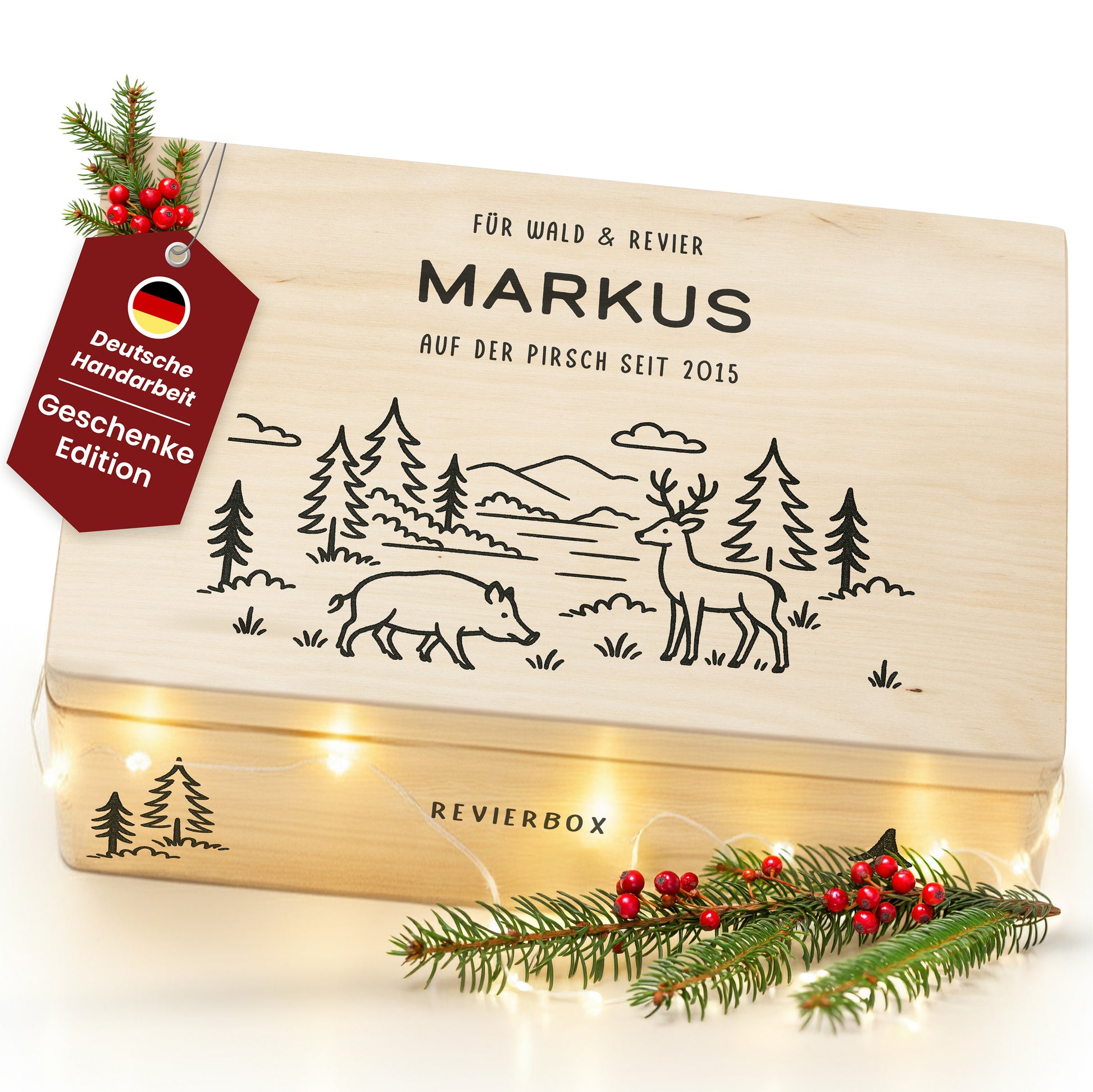 Wähle zwischen Angeln, Jagen, BBQ, Fahrrad, Motorrad, Camping oder Wandern. Jede Kiste wird mit einem liebevoll gestalteten Hobby-Icon veredelt.
