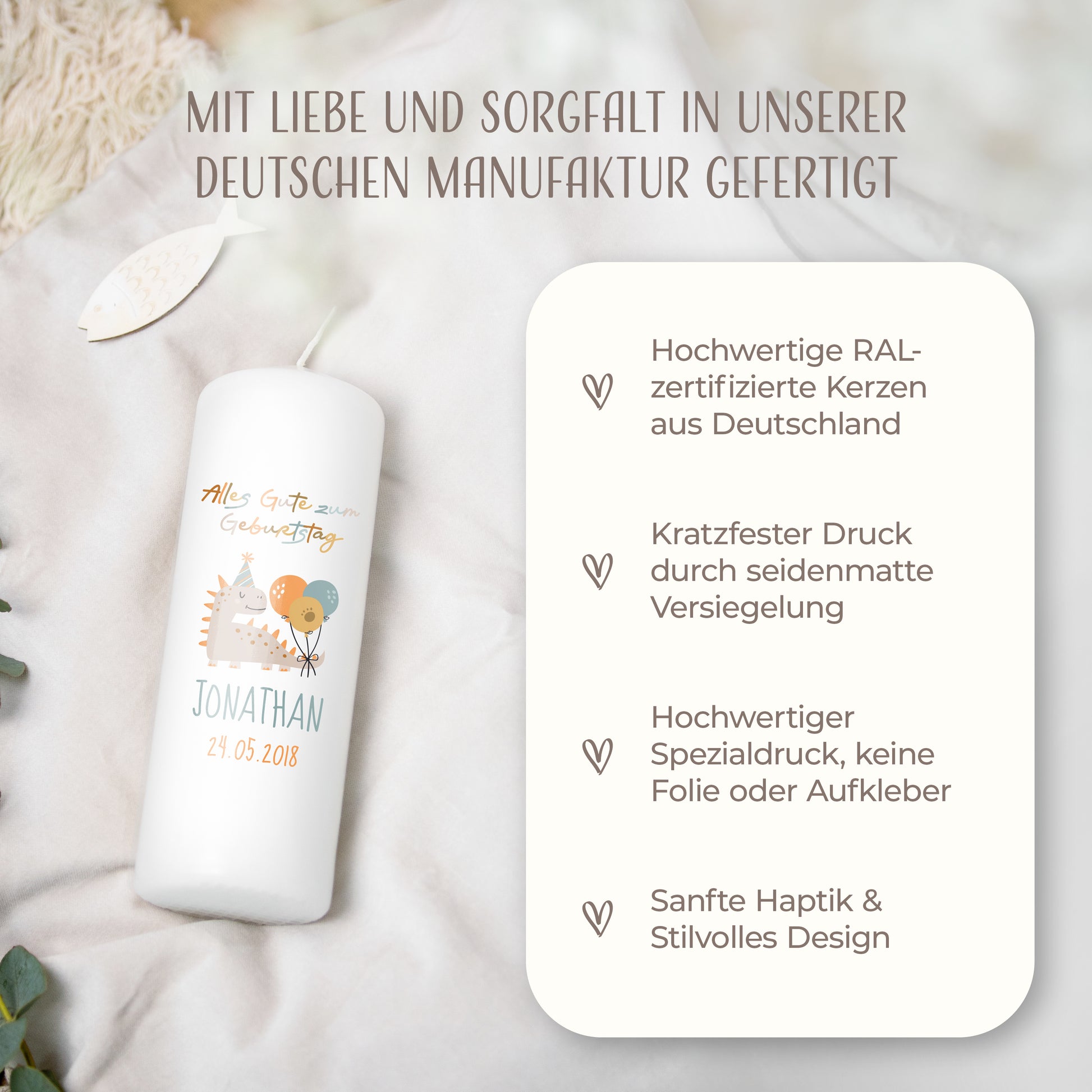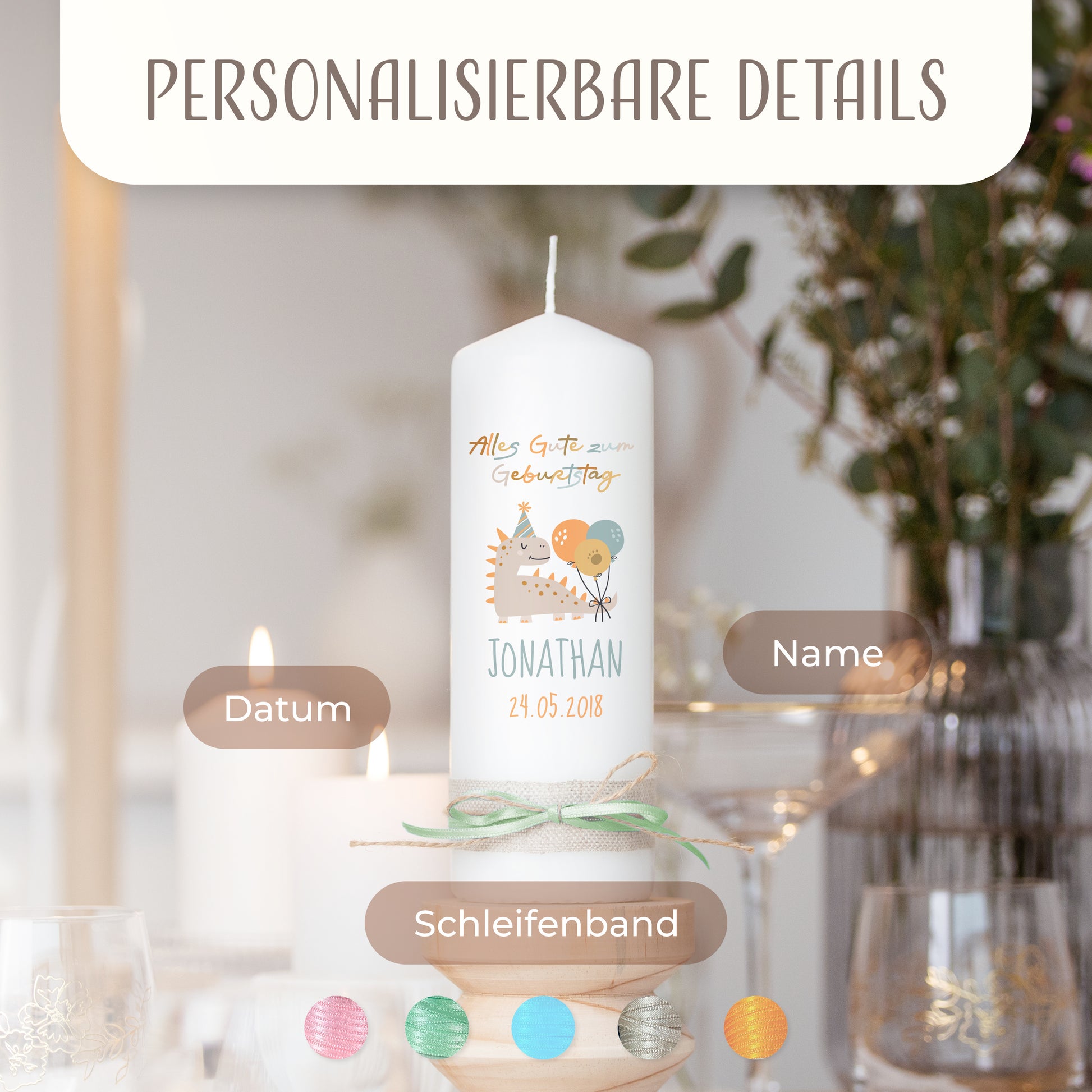 Personalisiere mit Name, Datum und einem individuellen Schleifenband. Jede Kerze erzählt eine ganz persönliche Geschichte, perfekt für besondere Anlässe wie Hochzeiten, Taufen, Kommunion und mehr.