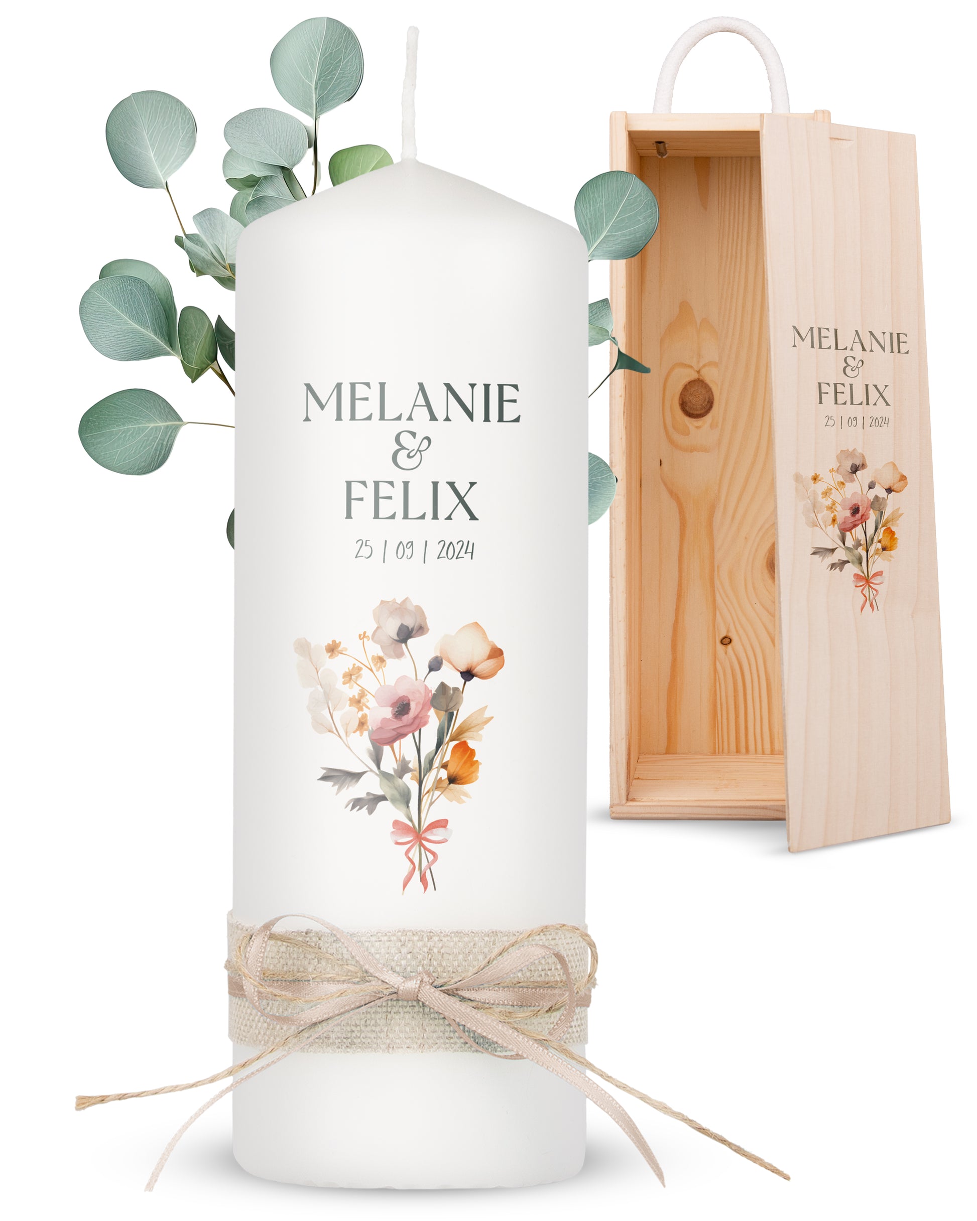 Personalisiere mit Name, Datum und einem individuellen Schleifenband. Jede Kerze erzählt eine ganz persönliche Geschichte, perfekt für besondere Anlässe wie Hochzeiten, Taufen, Kommunion und mehr.