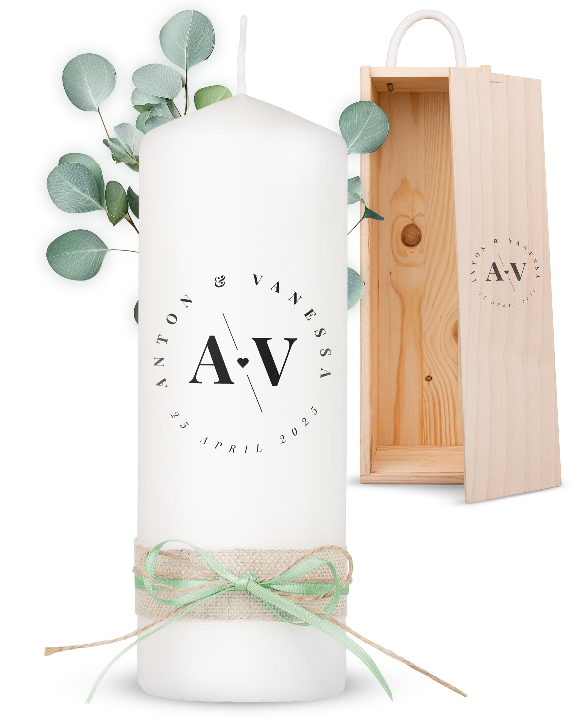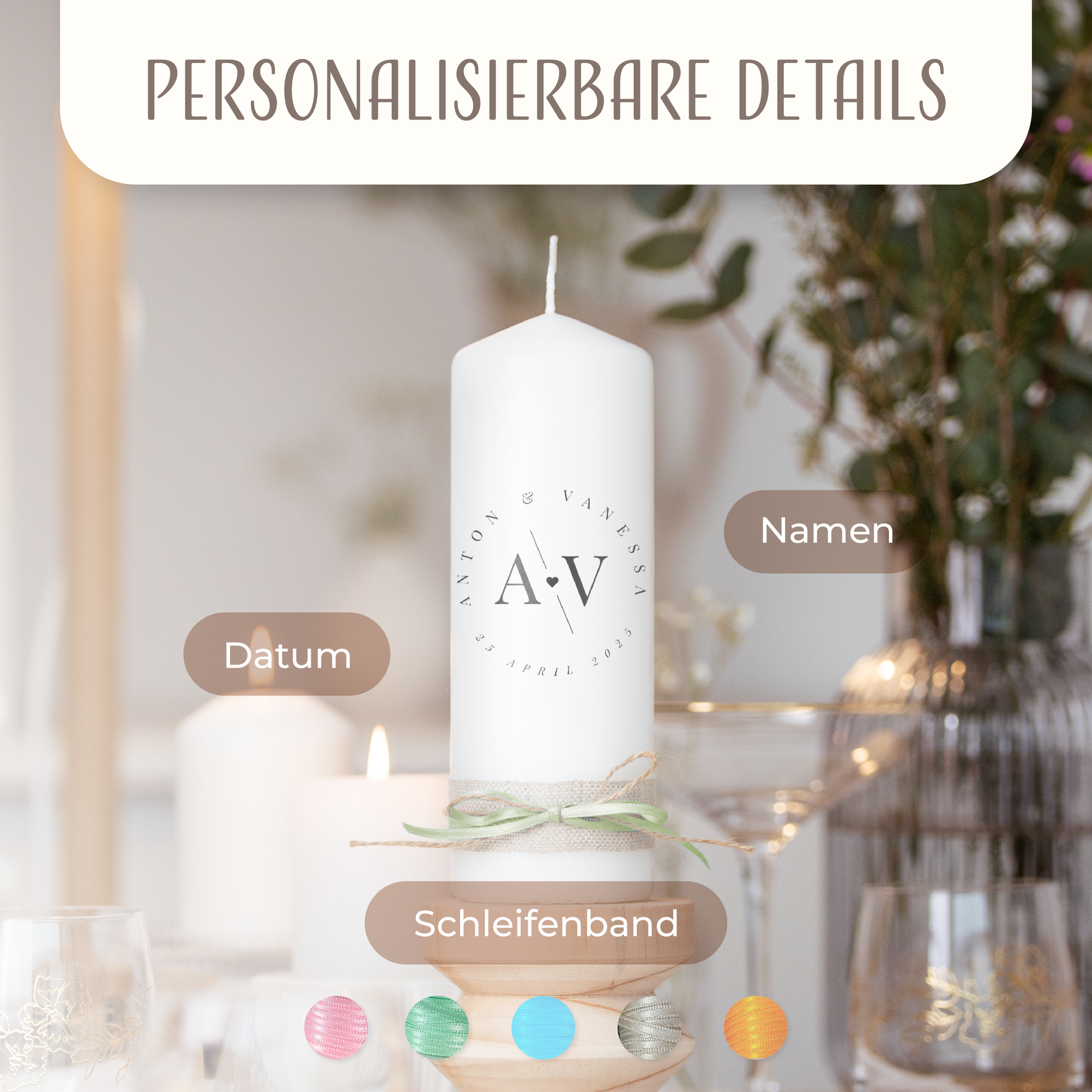 Personalisiere mit Name, Datum und einem individuellen Schleifenband. Jede Kerze erzählt eine ganz persönliche Geschichte, perfekt für besondere Anlässe wie Hochzeiten, Taufen, Kommunion und mehr.