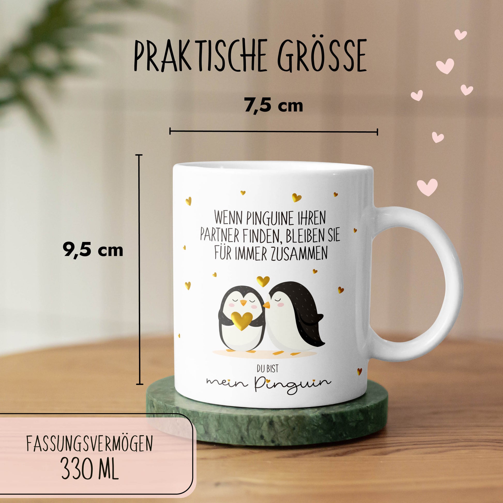 Tasse "Pinguin" | Goldene Details Herzchen (024)